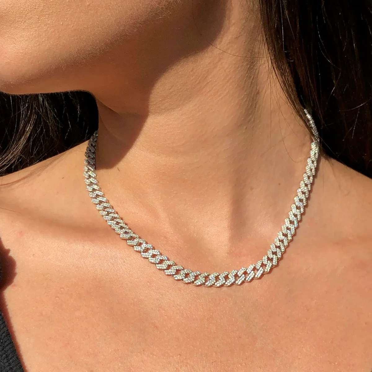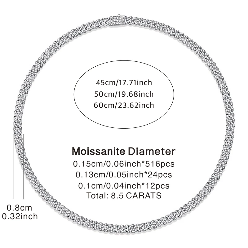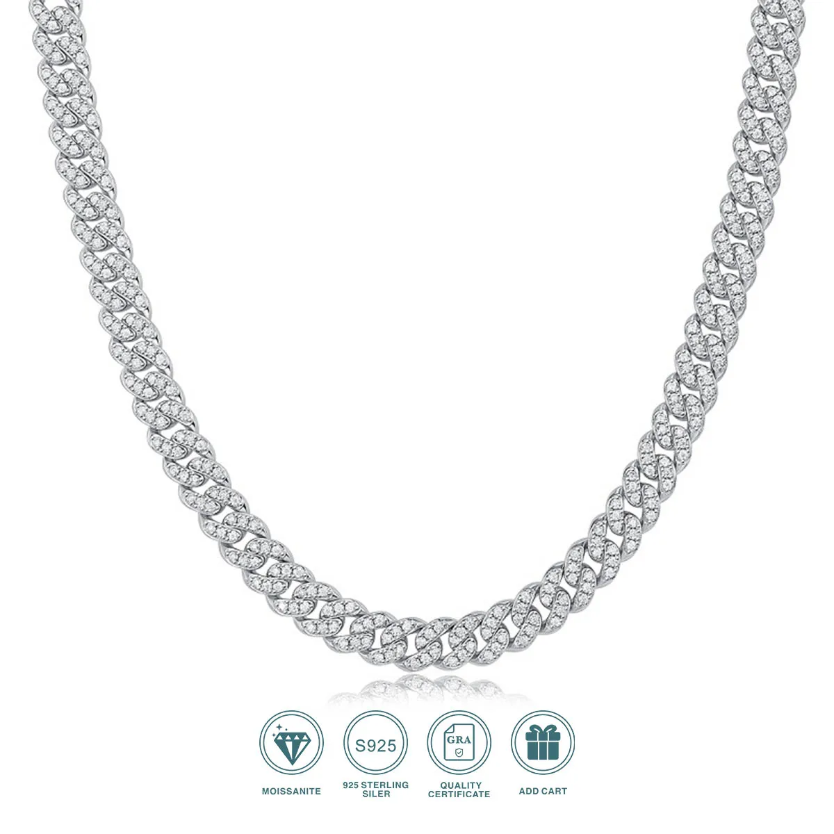 JIUZUAN D Color Full Moissanite Cuban Chain Women'S Necklace Men'S S925 Silver Necklace Hip Hop Fashion Luxury Boutique Jewelry