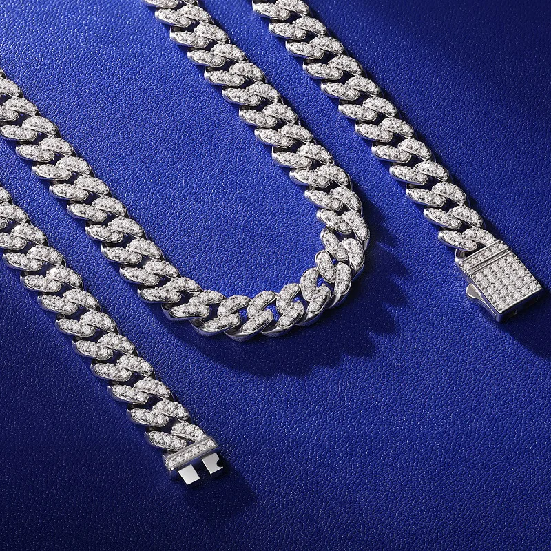JIUZUAN D color full moissanite Cuban chain women's necklace men's S925 silver necklace hip hop fashion luxury boutique jewelry